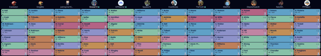 After seeing zero wide receivers go off the board in the second round. This group of mock drafters wasted no time making up for it in the next two rounds. Seven WRs in total come off the board in the second and third rounds. The upside of the wide receivers in this class who will be mid-round picks is minimal. However, with the potential longevity of the position, managers canโt help but take a chance on them.